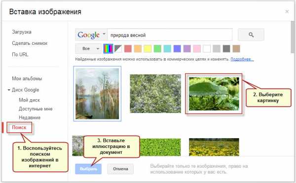 Удобно подбирать иллюстрации к документу через поиск в сети.