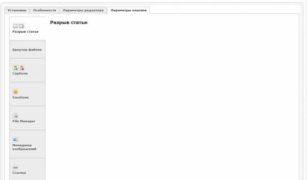 Рассматриваем все по порядку сверху вниз. Настройки плагинов Разрыв статьи, Браузер файлов не трогаем.