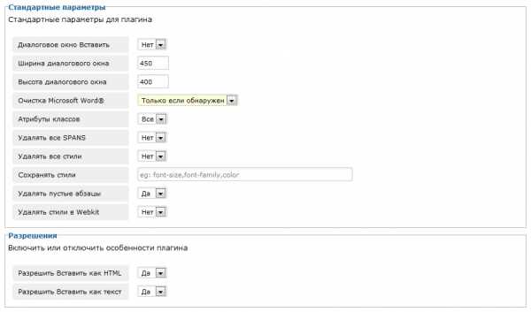 Расширенная настройка JCE. Группы. Вкладка «Параметры плагина»