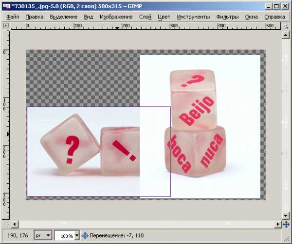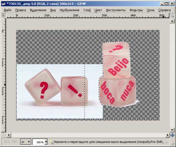 4. Выделите необходимую часть фотографии , а после этого инвертируйте выделение (Ctrl+Shift+I) и удалите лишние фрагменты. Вырезанную часть с поддержкой инструмента перемещения установите в необходимое место. Для того дабы снять выделение, в меню Select выберите опцию Deselect.