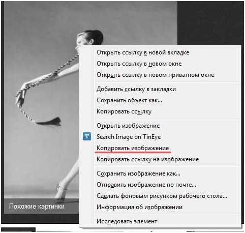 Теперь наша задача – это вставить в графический редактор второе изображение. Если вы скачиваете его из интернета то есть два пути решения этого вопроса. Первый метод – это нажать правой кнопкой мыши на картинку и выбрать из списка «Сохранить изображение как», после чего этот файл окажется на вашем компьютере в «Загрузках» или же в той папке, которую вы выбрали до этого раннее. Второй вариант – это перенос картинки в Paint посредством буфера обмена. Делается это следующим образом: также кликаете правой кнопкой мыши по изображению, после чего из появившегося списка выбираете «Копировать изображение».
