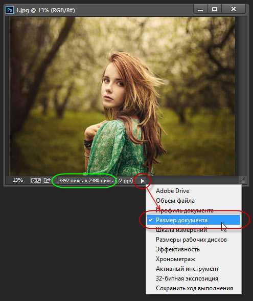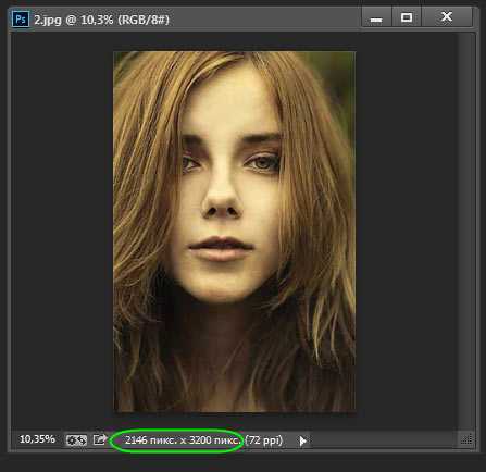 3. Измените масштаб отображения картинки. Для этого измените расположение ползунка в правом нижнем углу рабочего окна. Посмотрите колляции изображения. Специальное внимание уделите разрешению картинки.