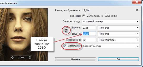 5. Выберите большее изображение и нажмите кнопку «Изменить размер». Активируйте режим обработки «Пиксели». Измените значение разрешения в поле «По вертикали». Если вы не хотите исказить изображение, не снимайте галочку с пункта «Сберегать пропорции».