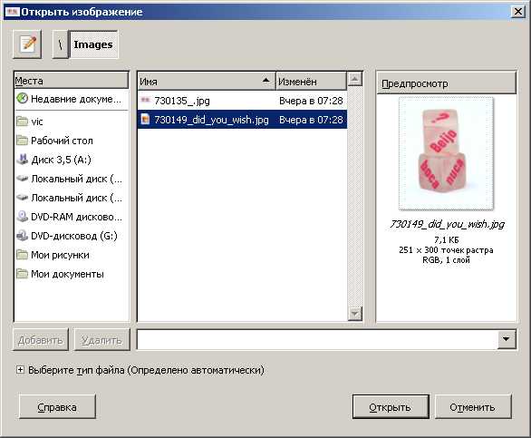 1. Откройте одну из фотографий в редакторе GIMP. Для этого выберите в меню пункты «Файл», а после этого «Открыть», либо же нажмите комбинацию клавиш Ctrl+O.