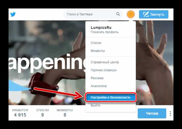 Нажмите на иконку с изображением профиля, расположенную между строкой поиска и кнопкой «Твитнуть» в правом верхнем углу. В открывшемся меню выберите опцию «Настройки».