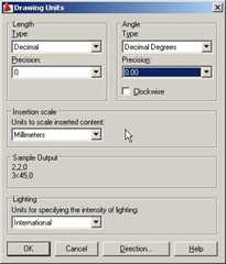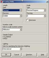 1) Вызовите команду Формат \ Единицы, которая выводит диалоговое окно Единицы Чертежа для установки единиц измерения. Смотрите рис. №1.