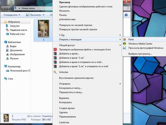 - Правой кнопкой мыши нажмите на изображение, изберите пункт «Открыть при помощи…» и нажмите на слово Paint. То же самое действие повторите со вторым изображением.