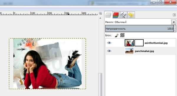 Вот в принципе и все на этом. Получился такой простой урок GIMP по объединению (сведению) двух картинок в одну.