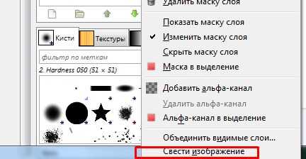 Шаг 4. На этом этапе выполняем объединение слоев. Для этого кликаем правой кнопкой мыши в области слоев и выбираем из меню пункт «Свести изображение»