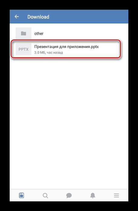 Пользователям официального мобильного приложения ВКонтакте процесс отправки презентаций имеет минимум отличий от первого способа с оговорками на расположение и наименование связанных разделов. Любые ограничения на отправку, включая количество прикреплений и тип сообщения, также полностью идентичны ранее описанному варианту.