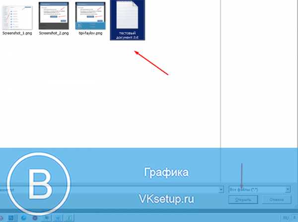 У вас откроется окно, где буду перечислены доступные форматы. Это могут быть текстовые файлы, архивы или анимация (см. как загрузить гифку в вк). Нажмите на кнопку «Выбрать файл».