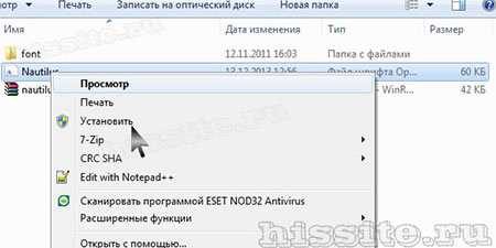 Вариант 2. Не открывая файл выделяем его, и правой кнопкой мыши вызываем контекстное меню. В нем выбираем команду Установить. Произойдет загрузка в системную папку.