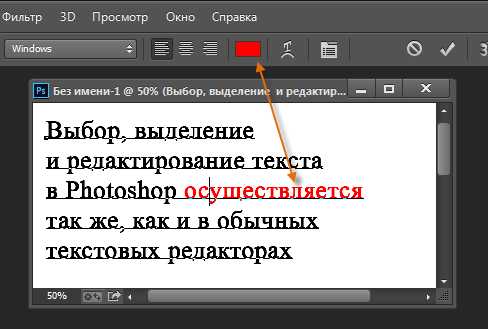 Добавление текста в документ Photoshop