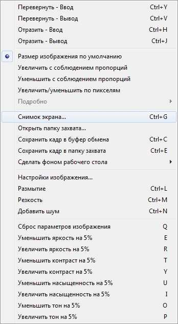 проигрывателя правой кнопкой мыши. Таким образом появится контекстное меню программы, в котором выбираем «Захват». - В открывшемся окне появятся вкладки, и возле каждой горячие клавиши: