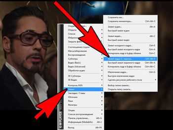 В этом приложении есть несколько вариантов, для сохранения скриншота видео. Для начала вызываем контекстное меню, кликнув правой клавишей мыши на воспроизводимом видео. Ищем пункт «Захват».