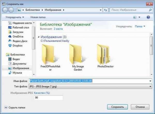 Осталось сохранить картинку в нужном вам формате. Для этого в меню Файл, команда Сохранить как. Далее обычная процедура сохранения – выберите имя для вашей картинки и формат файла. Стоит отметить, что в этой же программе можно выбрать только границы картинки, ведь там часть экрана занята интерфейсом проигрывателя. Но эта операция не обязательна, ведь вы можете потом работать в своем любимом редакторе.