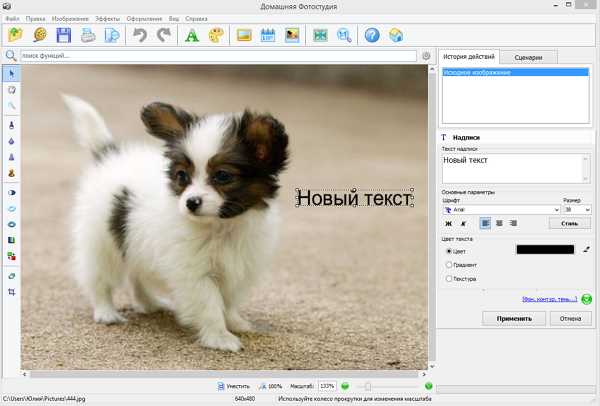 Написанный нами текст мы можем лекго поменять на другой. Также надпись можно двигать, чтобы отрегулировать видимость картинки.