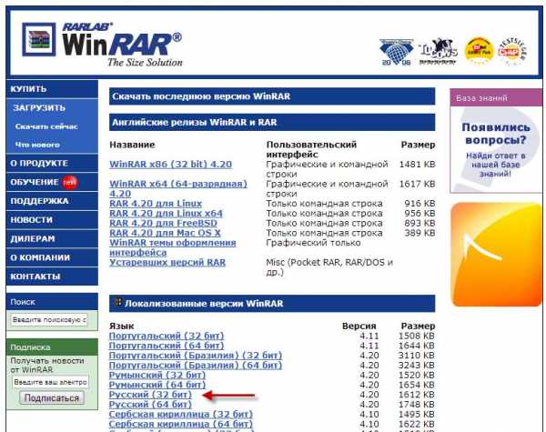 Итак, переходите по ссылке на официальный сайт WinRar и нажимаем «Загрузить».