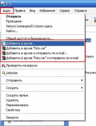 Работа с архиватором WinRar