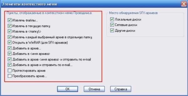 class=»eliadunit»>1. “Встроить WinRAR в оболочку (в Проводник)” значит, что при открытии проводника (Мой компьютер) и выделении какого-либо объекта (файла или папки) и вызова контекстного меню. Нажатием на “Файл” или правой кнопкой мыши на какой-либо объект Вы будете видеть там пункты команд WinRAR.