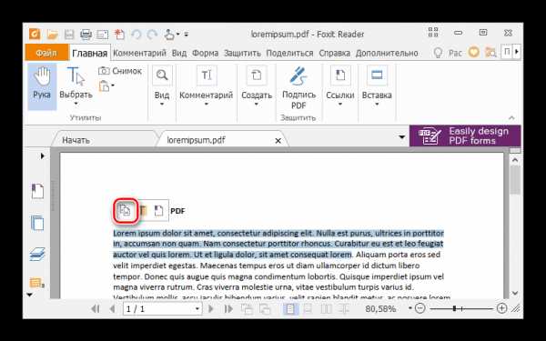 Быстрая и полностью бесплатная читалка Foxit Reader отлично справится с задачей копирования текста из ПДФ-файла.