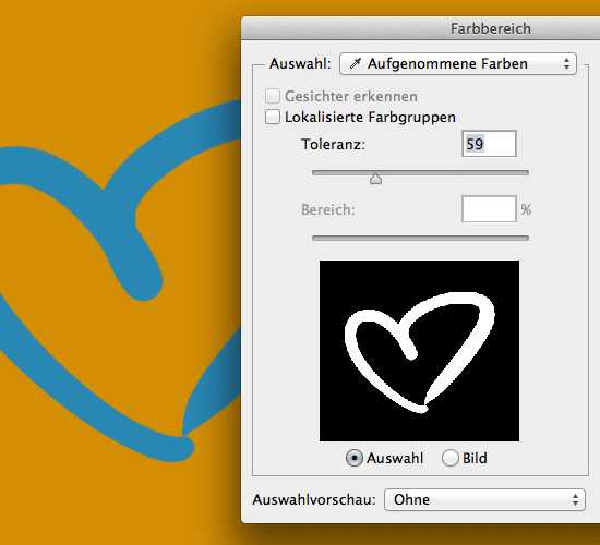 Вы можете использовать кнопку «Цветовой диапазон», чтобы выбрать цвета, которые будут использоваться для маски с помощью пипетки. Вы можете определить, сколько одинаковых цветов должно быть включено в маску. Здесь вы должны убедиться, что вы не создаете слишком острые края, а мягкие переходы. Если вы активируете «локализованные цветовые области», вы можете использовать элемент управления области для определения радиуса, в котором записаны цвета.
