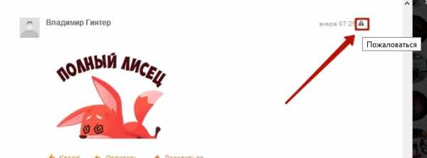 - Убрать комментарии прочих пользователей внутри тематических групп нельзя. Но можно пожаловаться на неугодное сообщение, щелкнув мышкой на треугольнике с восклицательным знаком внутри.