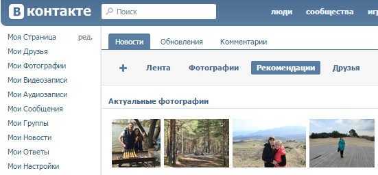 - Теперь чуть подробнее о выполненных вами действиях. Раздел «Фотографии» содержит все новые снимки, которые выложили ваши друзья. Фотостатусы, как правило, туда не попадают. Что касается рекомендаций, то именно в этом разделе будут сформированы актуальные фотографии.