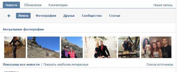 Шаг 2Первой строкой в списке новостей Вы увидите блок с актуальными фотографиями друзей в социальной сети ВКонтакте. Стоит отметить, что активные пользователи социальной сети не всегда наблюдают данный блок в ленте новостей, так как для его появления необходимо как минимум 2 часа не посещать свой профиль в социальной сети.