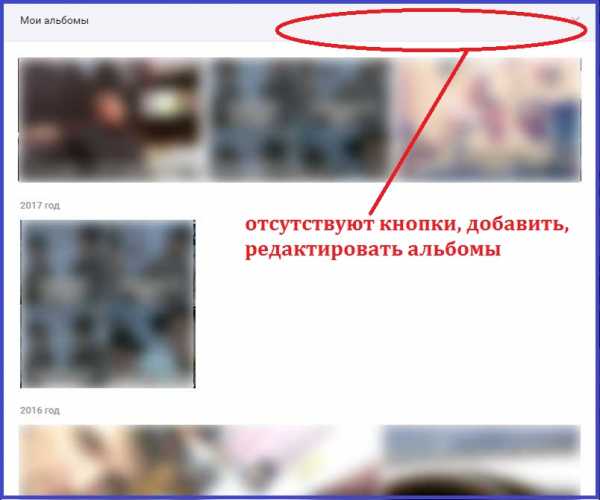 При нажатии ссылки «Мои фотографии», открываются все фото, отсортированные по годам. Но нет кнопок «Добавить альбом», «Добавить фото в альбом», «Редактировать».