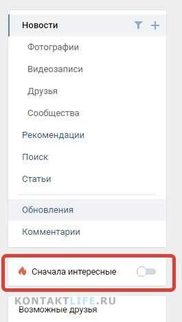 - чтобы просмотреть только самые интересные посты (которые набрали больше лайков и комментариев), отметьте пункт «Сначала интересные»: