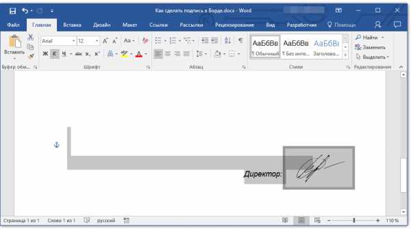 Вставка рукописной подписи с машинописным текстом