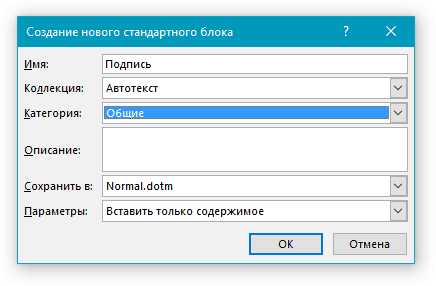 Блок подписи можно сохранить как элемент автотекста, чтобы он был доступен в коллекции стандартных блоков автотекста.