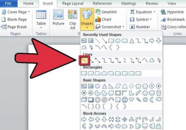 В выпавшем перечне выберите нужную вам фигуру, в нашем случае это обычная линия. После этого проводим ее в нужном месте и в нужном направлении.