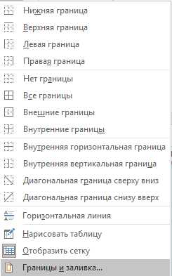 5. Кликните правой кнопкой мышки по таблице и выберите пункт “Границы и заливка”.