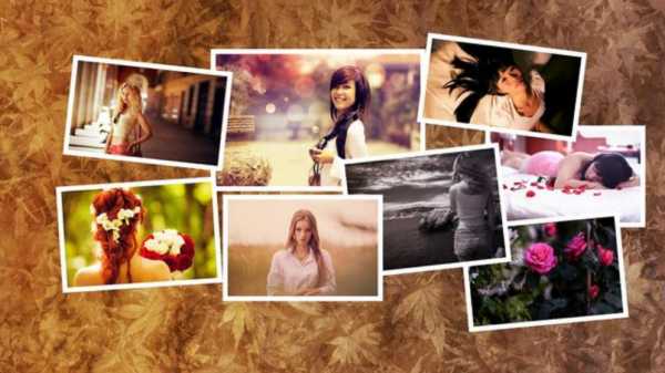 Коллаж может быть простым – состоять из набора фотографий (или картинок) размещенных самым различным образом на выбранном фоне. Например так: