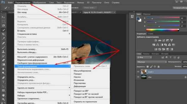 Если вставляемый объект больше фона, то его надо масштабировать. Выбираем в верхнем меню Редактирование-Трансформирование-Масштабирование.