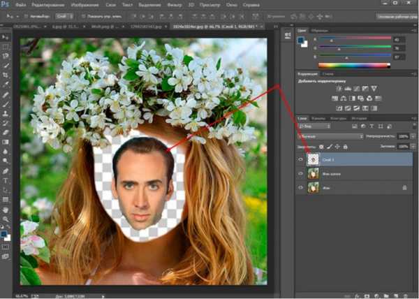 Теперь возвращаемся к слою с подготовленным к вставке лицом, копируем его, открываем шаблон и вставляем в шаблон лицо.