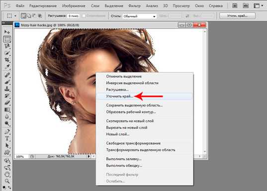 Если на фото девушка с развивающимися волосами, или у парня волосы торчат в разные стороны, прочтите: как выделить волосы в Фотошопе.