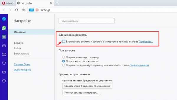 Opera – первый браузер, для которого разработчики придумали функцию блокировки всплывающей рекламы. Однако чтобы её правильно настроить необходимо длительное время отключать нежелательные плагины, пока программа их не запомнит. Хотя рекламу можно отключить насовсем. Для этого воспользуемся следующим алгоритмом.
