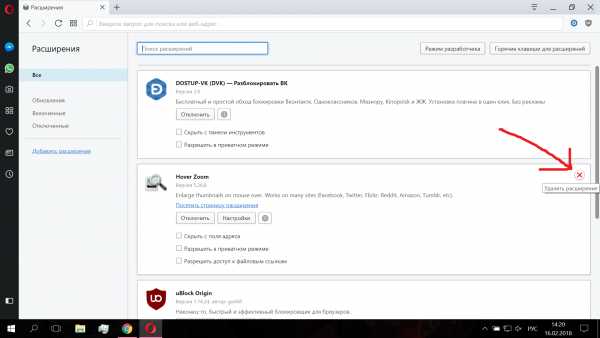 Выбираем подозрительное расширение и нажимаем «Х»- («Удалить»)
