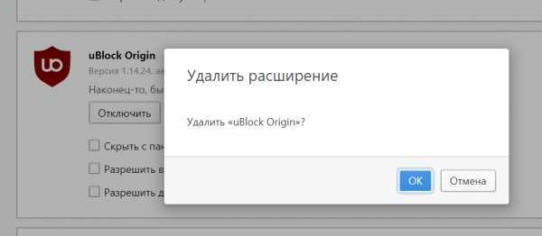 - Найдите подозрительное или неизвестное расширение и нажмите кнопку «Удалить» (X). Это приведет к устранению нежелательной надстройки. Подтвердите выбор нажатием кнопки «ОК».