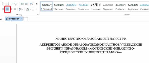 3). В первой строке укажите заглавными буквами наименование образовательного государственного органа: Министерство образования и науки РФ. Выровняйте текст «по центру».