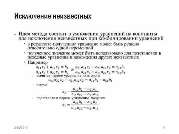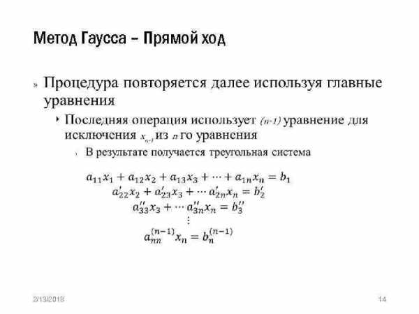 Систему уравнений (2) можно решить различными методами. Один из наиболее простых и эффективных методов является метод исключения Гаусса и его модификации. Алгоритм метода основан на приведении матрицы А к треугольному виду (прямой ход) и последовательном вычислении неизвестных (обратный ход). Эти процедуры можно выполнять над невырожденными матрицами, в противном случае метод Гаусса неприменим.