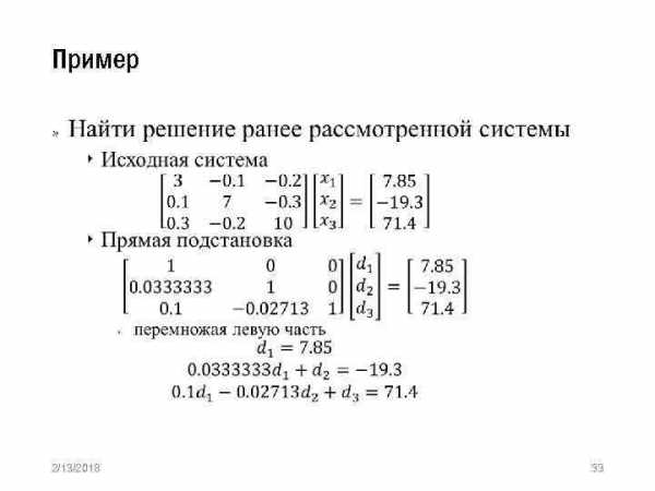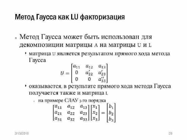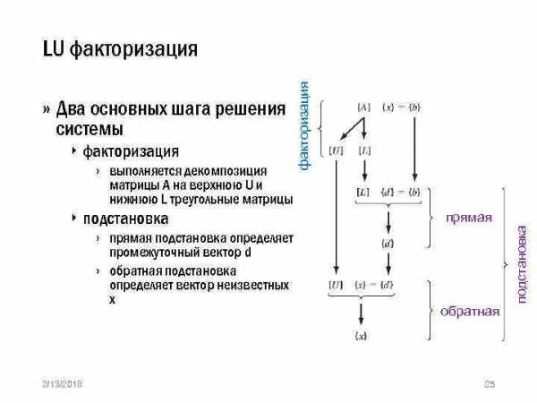 Теперь поговорим о разложении матрицы. Нахождение решения через разложение матрицы очень эффективно. Эффективность обусловлена скоростью нахождения решения для данного вида систем и точностью полученных результатов.