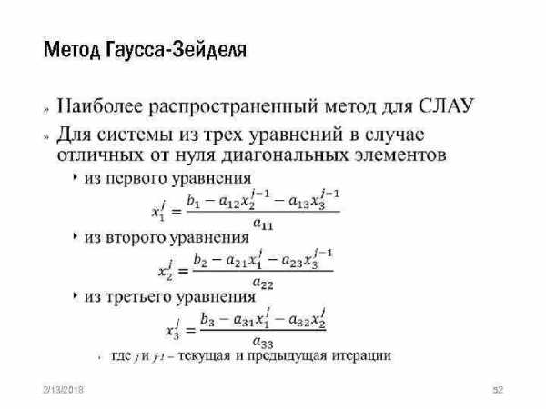 · аналитическое решение системы линейных алгебраических уравнений методом Гаусса,