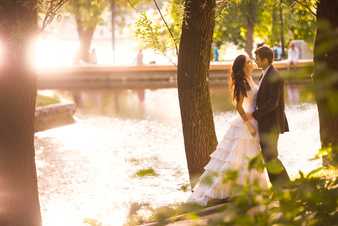 В парке мы, конечно, застали самый лучший свет, это уже было семь часов вечера, низкое закатное солнце подарило нам очень приятные и тёплые снимки, на которых мы и решили закончить нашу свадебную прогулку по городу.
