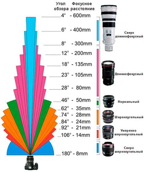 Сверх широкоугольный менее 14 мм. “Рыбий глаз” — 8 мм и углом обзора более 180 градусов.