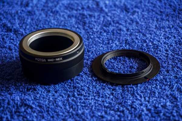 На фото переходники с резьбы М42 на байонет Sjny-a и Sony-E. Для перехода с резьбы М39 на М42 дополнительно вкручивается резьбовой переходник.