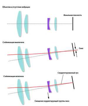 Стабилизация изображения — это технология, механически компенсирующая угловые движения камеры, для предотвращения смазывания изображения при больших выдержках. На сегодняшний день стабилизация изображения в фотоаппаратах осуществляется двумя способами: компенсирующим смещением матрицы или специальной линзы в объективе. В первом случае стабилизация обеспечивается при использовании практически любого объектива. Такой тип стабилизации применяют Sony, Pentax и Olympus, благодаря чему объективы этих производителей не нуждаются во встроенных стабилизаторах. Все остальные компании выпускают, помимо обычных, еще и стабилизированные объективы, оснащенные механизмом смещения корректирующей линзы. Такие объективы стоят дороже нестабилизированных, но, по мнению многих фотографов, обеспечивают более эффективную стабилизацию, чем камеры со встроенным стабилизатором.